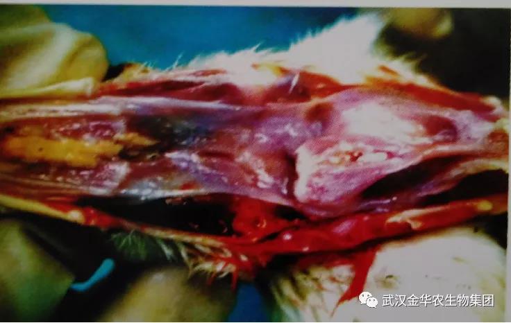(2)病雞岀現咳嗽、嘎嘎聲、張口呼吸,可見口腔、咽喉、食管甚至氣管的黏膜上有黃白色結節;