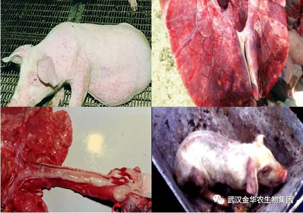 1、最急性型:感染開始時,一個或幾個豬群中1頭或幾頭豬突然發病,并可在無臨床癥狀情況下突然死亡,隨后疾病在敏感豬中傳播很快。病豬體溫高達41.5℃,精神委頓、不愿活動,厭食或廢食,并能出現短期腹瀉或嘔吐。