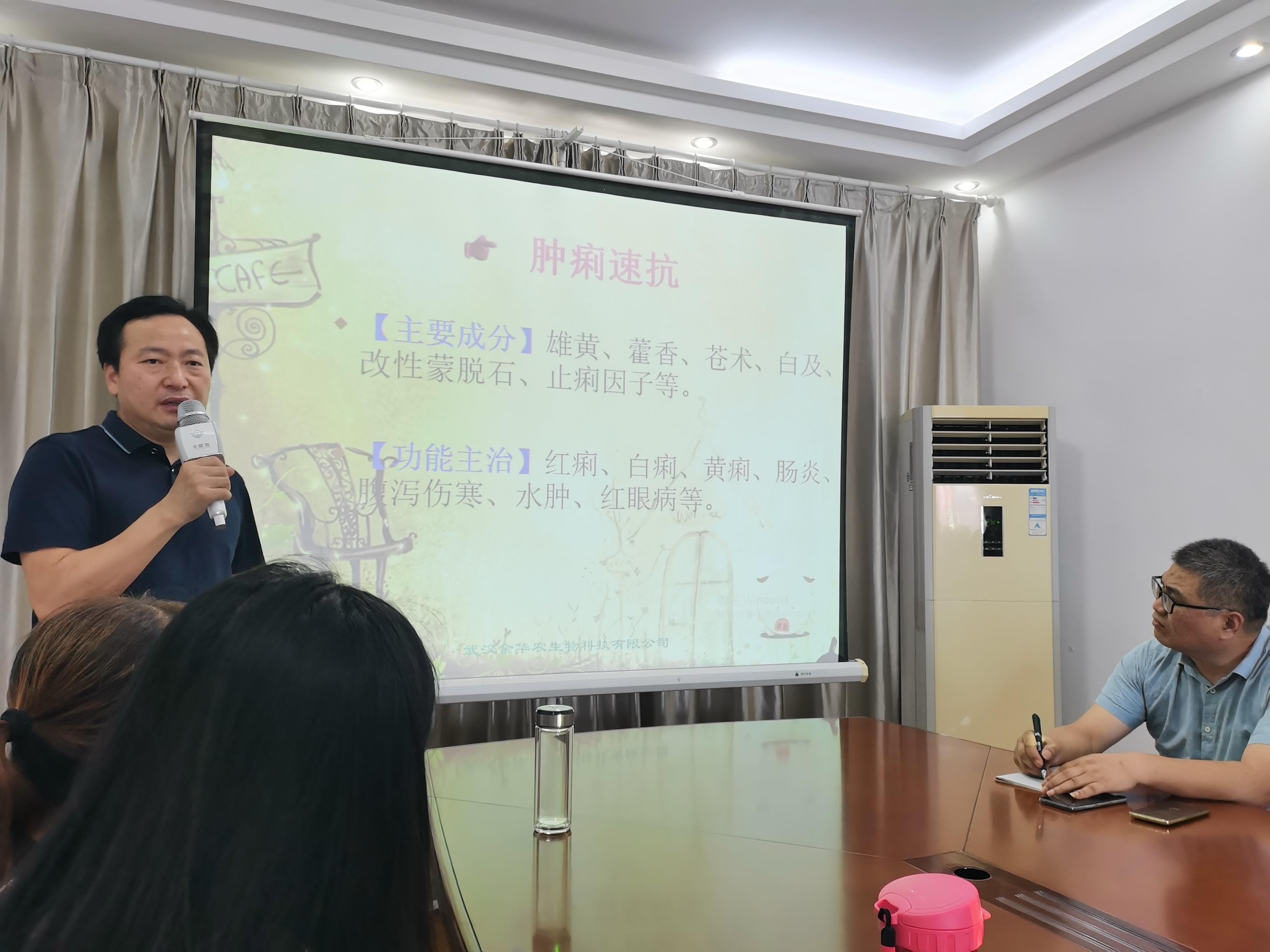 ? ? 隨后,富勝董事長對全體員工進(jìn)行了培訓(xùn),展開現(xiàn)場教學(xué),重點(diǎn)普及了藥品知識,針對每一個(gè)產(chǎn)品的屬性與治療功效細(xì)致地進(jìn)行了介紹,業(yè)務(wù)培訓(xùn)干貨滿滿。