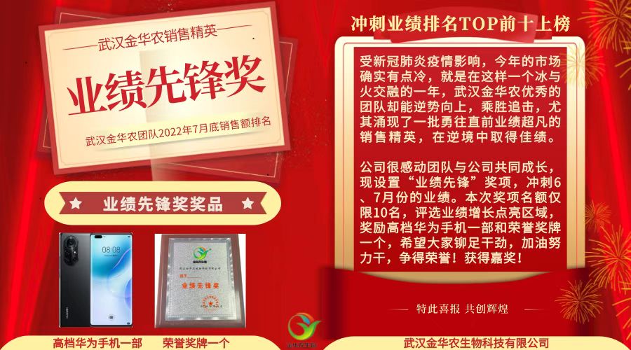 ? ? 公司很感動精英團隊與公司共同成長,現設置“業績先鋒”獎項,沖刺6、7月份的業績本次獎項名額僅限10名,評選業績增長點亮區域。經公司研究決定,特舉辦以下評選“業績先鋒獎”活動,業績先鋒獎10名。評選標準為6-7月份銷售額前十名,榮譽獎品:高檔華為手機一部 、榮譽獎牌一個。