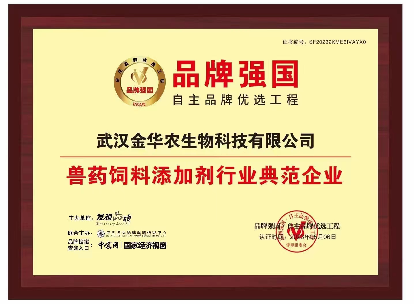 近日,武漢金華農生物科技有限公司經過資質審核、輿情監控等層層篩選,成功入選品牌強國·自主品牌優選工程,并被評為“獸藥飼料添加劑典范企業”。企業信息將錄入品牌強國優選工程數據庫,在國家級平臺向公眾展示品牌形象。
