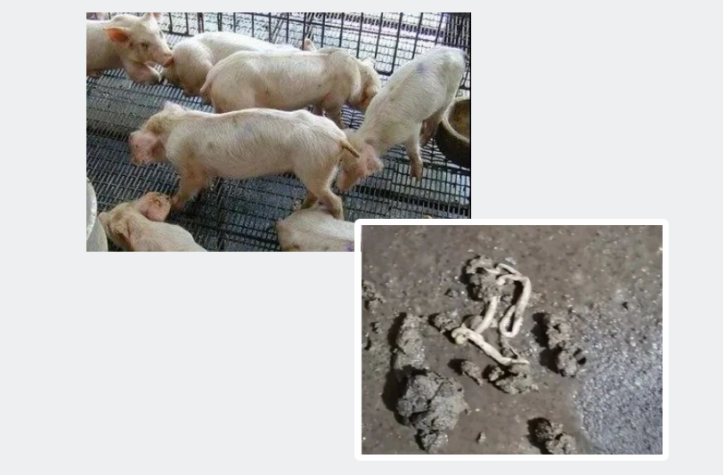 ? ? ? ?(1)2023年5月,阜陽某大型養(yǎng)豬場來電求助稱其飼養(yǎng)的2~6月齡豬生長緩慢、消瘦、豬毛粗亂無光、臥地吃食,個別豬出現(xiàn)呼吸急促、咳嗽、糞便帶血等病癥,經(jīng)現(xiàn)場檢測豬只糞便、體表情況、活動狀態(tài)判斷豬群患有寄生蟲病,立即實施治療方案:“伊苯佳+附優(yōu)金樂”,消滅體內(nèi)外寄生蟲及蟲卵、瀉火排毒、潤腸通便,使用5~7天,大群舊皮脫落,皮紅毛亮,且食欲大增,生長快速。