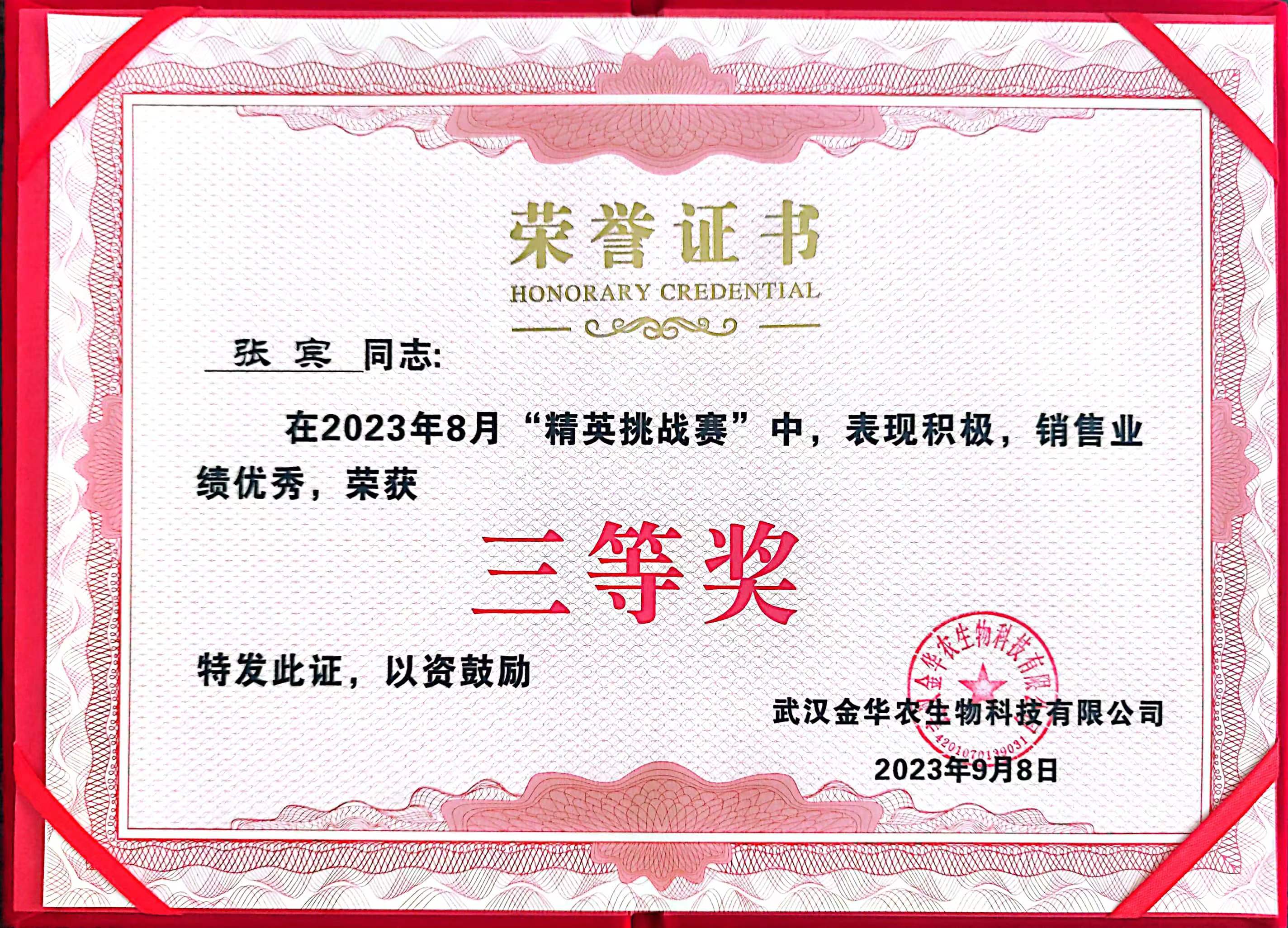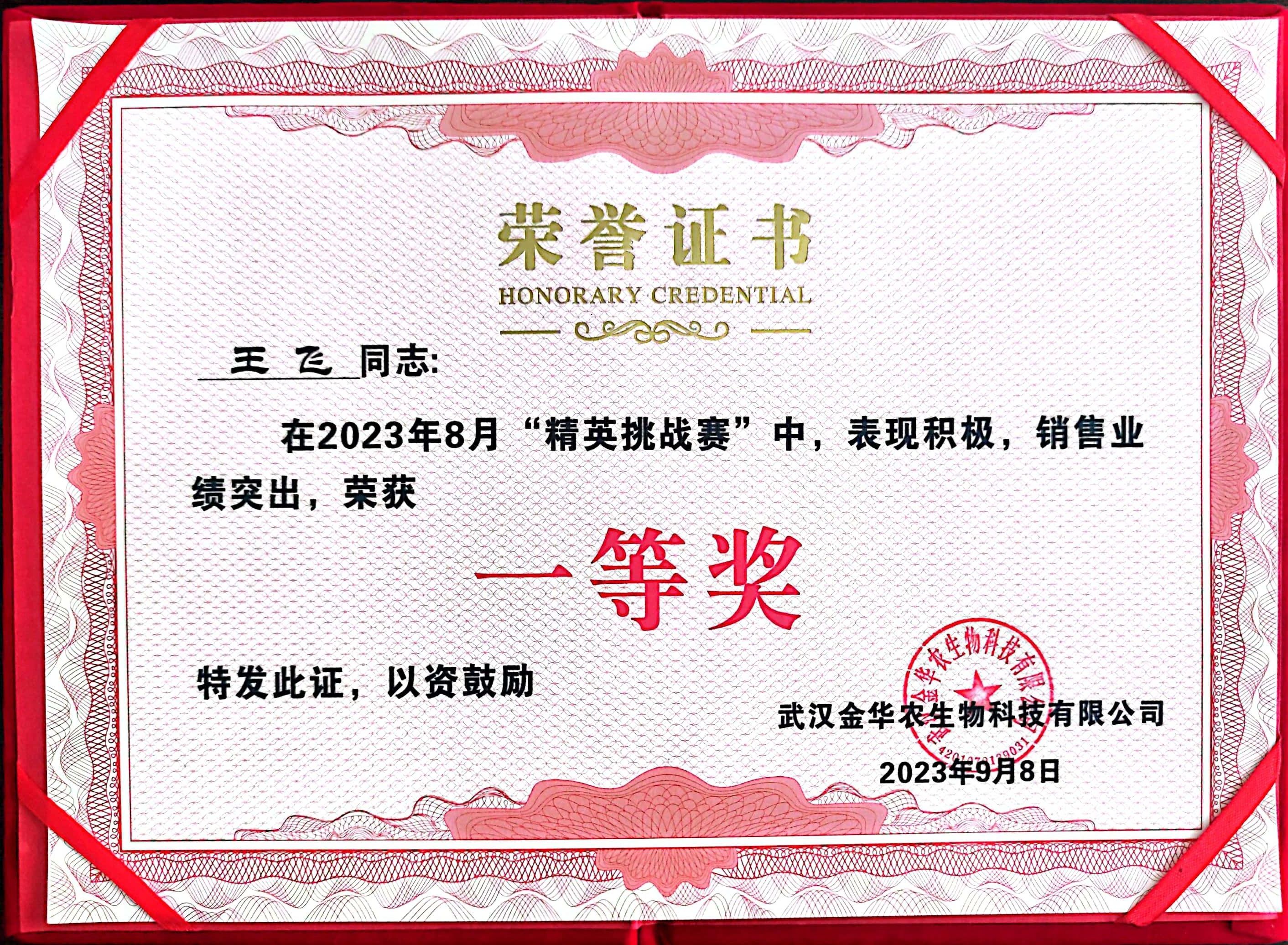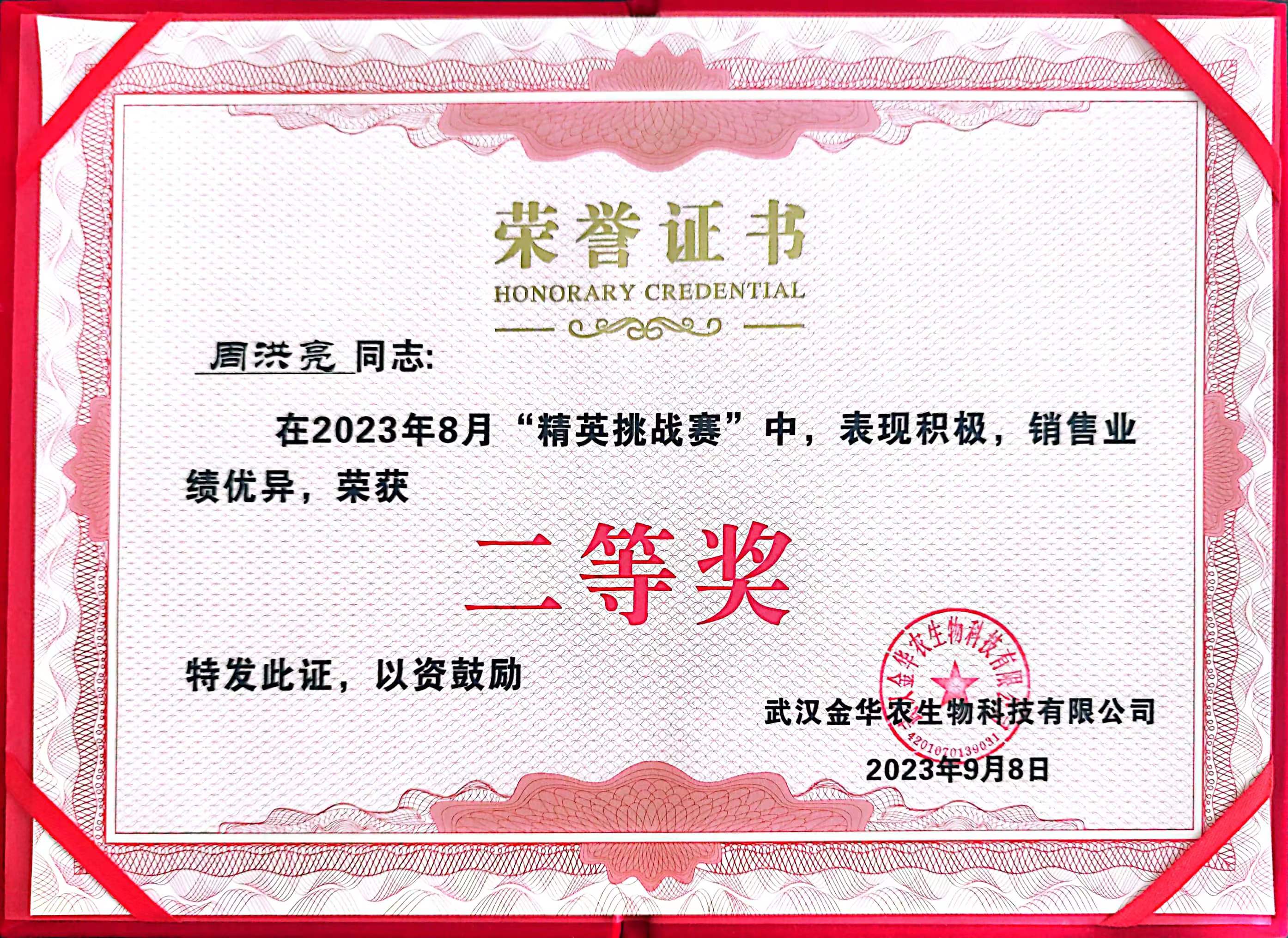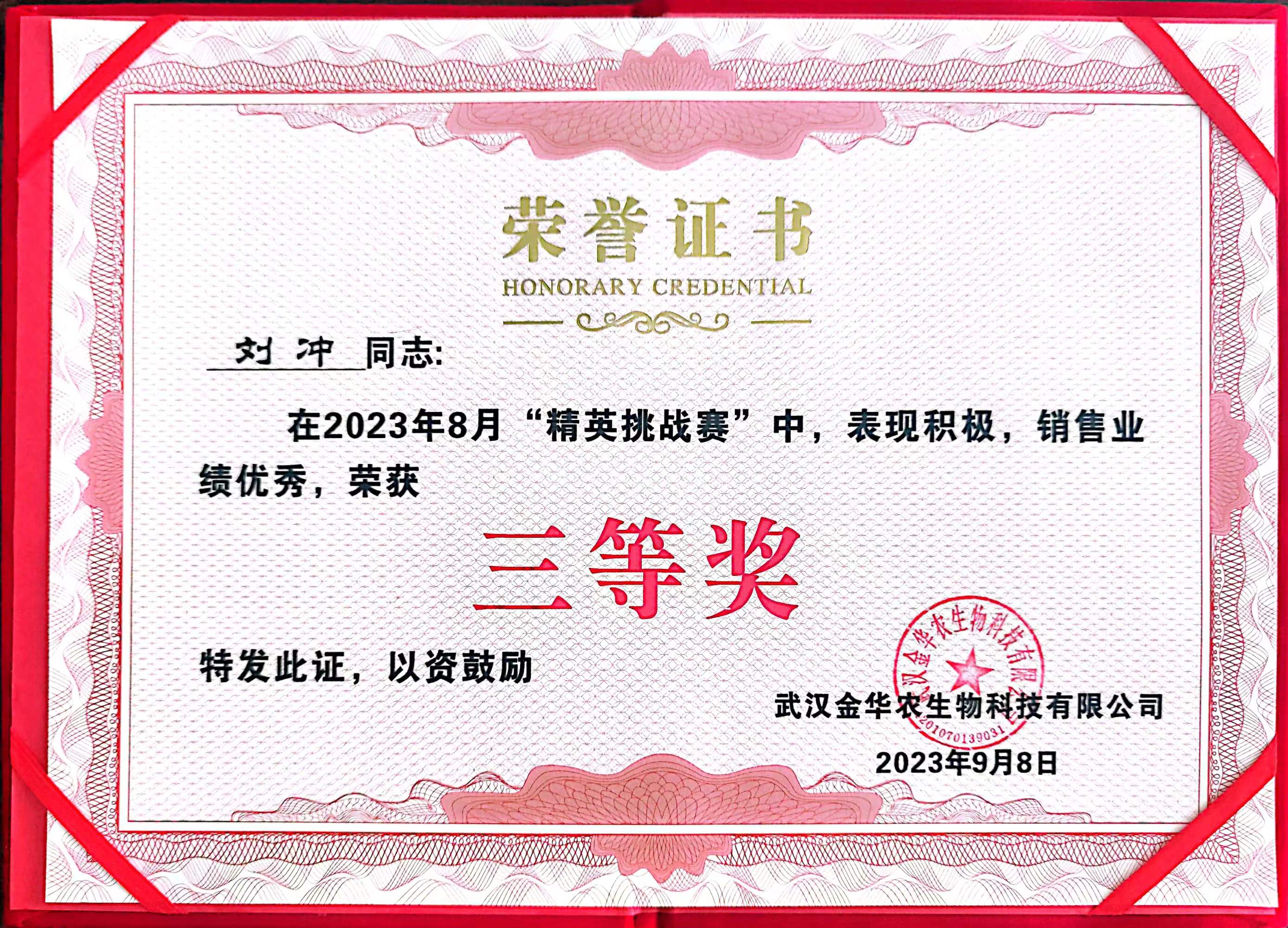 祝賀河北市場劉沖經(jīng)理在2023年“精英挑戰(zhàn)賽”中榮獲三等獎。作為奮斗在市場一線的他,每天要面對形形色色的客戶,想客戶所想,急客戶所急,為客戶排憂解難,獲得了越來越多客戶的認可。一切為了銷售、業(yè)績就是最強有力的話語,他自身的價值也在銷售中得到淋漓盡致的體現(xiàn)。他必將帶動武漢金華農(nóng)更加美好的明天。