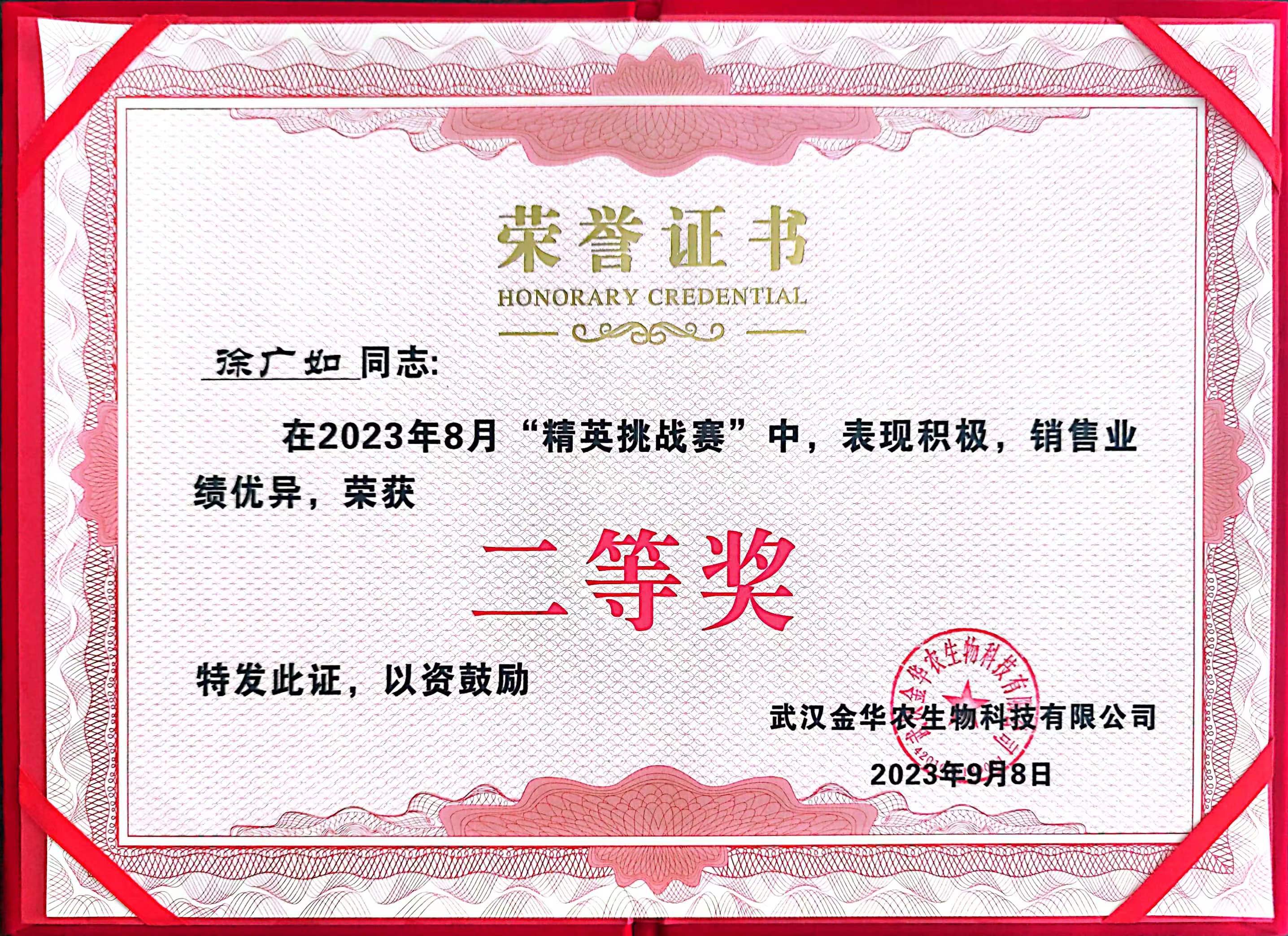 祝賀山東市場徐廣如經(jīng)理在2023年“精英挑戰(zhàn)賽”中榮獲二等獎。他是先進中的標(biāo)兵,標(biāo)兵中的旗幟,他用實際行動詮釋了標(biāo)兵的真正含義。他工作扎實,勇于接受挑戰(zhàn),積極配合完成公司全年銷售任務(wù),并積極開發(fā)外部市場,及時反饋市場信息,他有旗必爭,逢旗必奪,用業(yè)績向大家證明他是當(dāng)之無愧的標(biāo)兵。