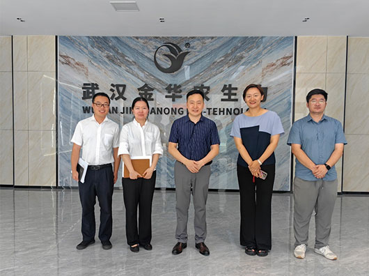? ? ? ?政府金融機構劉處長、宋主任,高行長一行,前往我司項目基地考察,參觀了解微生物實驗室、國家GMP車間、質量檢測中心、研發試驗中心建設情況,十分稱贊,并祝賀武漢金華農企業快速發展壯大。公司運營主管郭昌盛向領導一行介紹了公司在企業文化、技術體系、市場拓展、品牌建設等方面取得的成績。