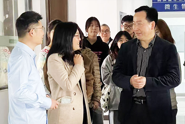 交流期間,武漢學院師生實地參觀了武漢金華農的微生物實驗室、新藥研發中心與多功能展廳。在實驗室,技術人員詳細介紹了企業在動物疫病臨床診斷與治療、綠色養殖技術方面的研發成果,包括綠色中藥、功能性添加劑、新工藝抗生素、科研創新化藥、益生菌制劑、霉菌毒素吸附劑等核心產品。學生們對武漢金華農企業 “科技創新、專致畜牧” 的研發理念表現出濃厚興趣,并就產品的國際認證標準、出口合規性等問題與技術人員展開交流。