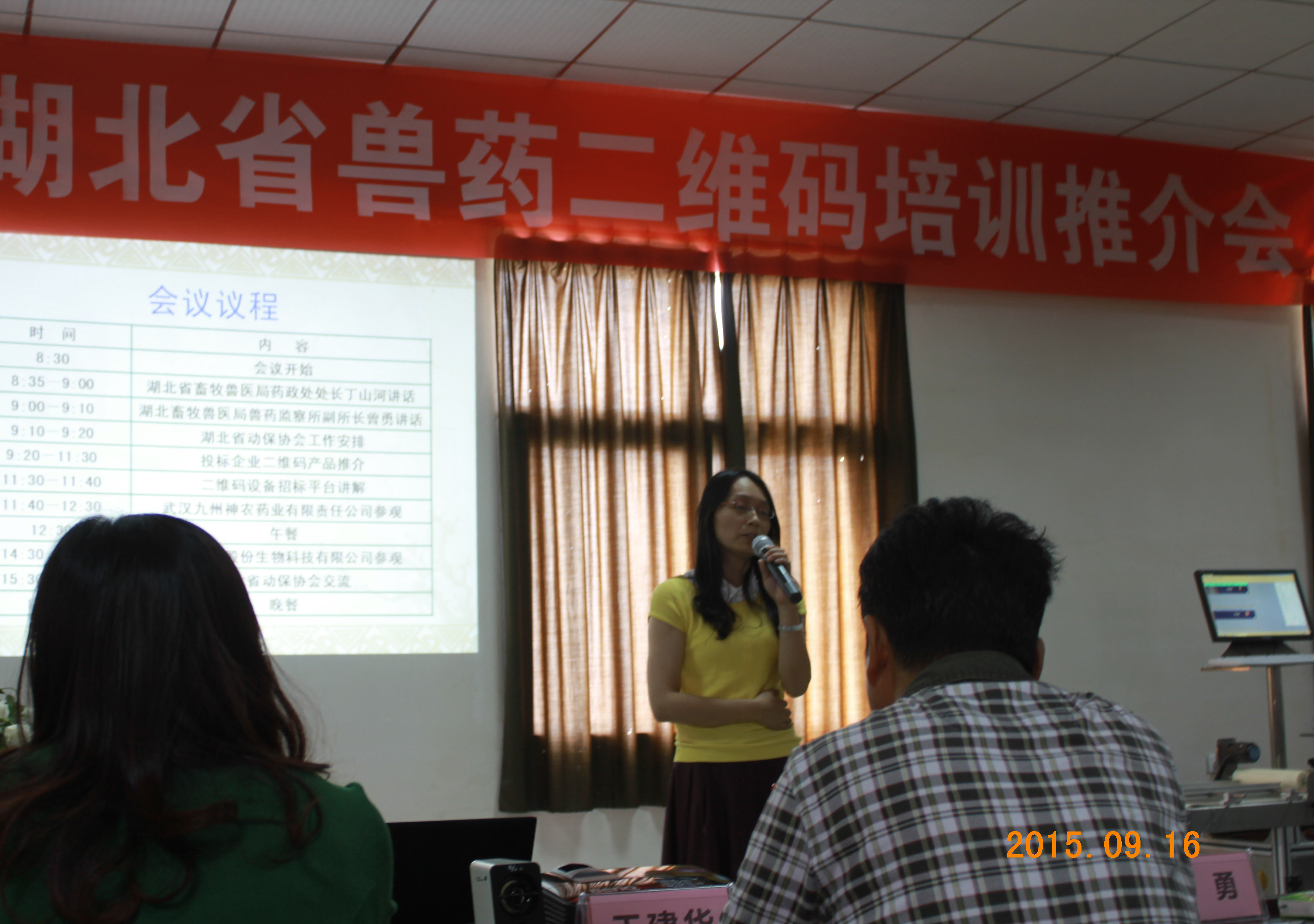 9月15-16日,湖北省畜牧獸醫局、湖北省獸藥監察所、湖北省獸藥動保協會,聯合舉辦的湖北省獸藥二維碼知識培訓暨推介工作會議在漢召開,公司徐總、辦公室黃總、行政部、質量管理部、生產部等負責人參加。