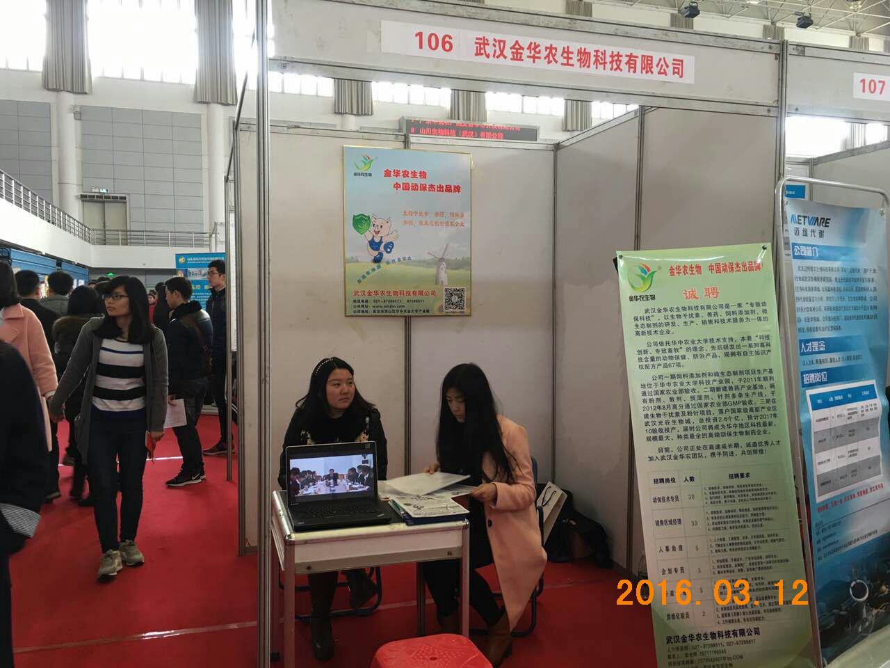 2016年3月12日,由湖北省高校畢業生就業指導服務中心和華中農業大學共同舉辦的2016屆畢業生春季供需見面會在學校體育館舉行,5000余名高校學子參加了現場見面會。武漢金華農生物應邀參加,攜8大種類共66個崗位高校攬才。
