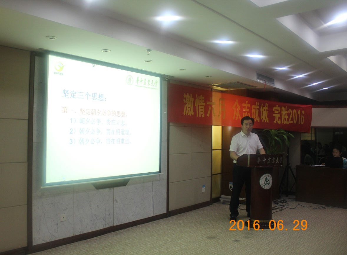 在這驕陽似火的的6月,我們相聚在華農獅子山,這個靈杰俊秀之地,我謹代表武漢金華農生物科技有限公司對你們的“回家”表示最熱烈的歡迎!代表公司向這半年以來奮勇拼搏在市場銷售一線的全體員工表示誠摯的問候!