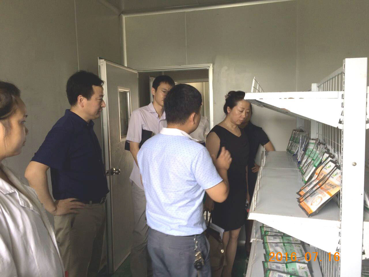 公司領導富勝總經理、常務副總徐巍博士、運營總監李靜老師、研發總監陳品教授、行政辦公室黃凡主任、獸藥GMP李良明廠長等熱情接待了陳書記、方主任、祝局長一行,陪同參觀了生產車間、研發大樓、質檢化驗室、原料成品倉庫。徐巍副總和陳品教授為大家詳細講解了新產品的研發和創新,現有成品生產流程,西藥微晶顆粒包被技術工藝,中藥固體分散技術工藝,抗病毒中藥長效包被緩釋技術工藝,飼料添加和微生態制劑綠色環保等先進工藝。