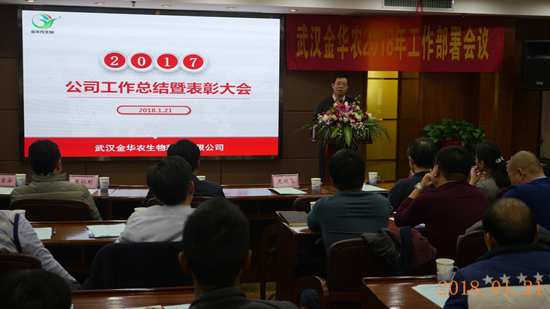 2018年1月20日~24日,武漢金華農(nóng)生物科技有限公司2017年度工作總結(jié)暨表彰大會,在華中農(nóng)業(yè)大學(xué)隆重勝利召開,學(xué)校、院系領(lǐng)導(dǎo)、博士生導(dǎo)師、教授專家、公司高層、全國21個省市的精英代表齊聚盛會,百人團(tuán)隊學(xué)習(xí)交流、總結(jié)經(jīng)驗、表彰先進(jìn)、規(guī)劃未來。