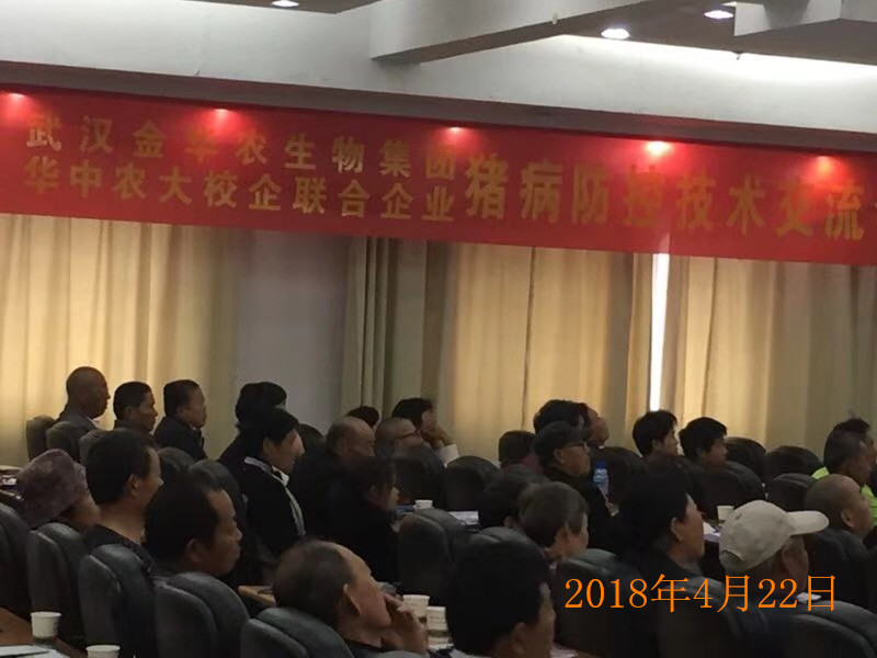 武漢金華農生物2018年春季豬病防控研討會于4月22日在江蘇徐州成功舉辦,會議舉辦非常成功,取得巨大勝利!公司藥品受到與會養豬戶的一致認可與高度贊美!本次會議由公司戰略合作伙伴“徐州博斯特動物疾病防治研究所”畢總、張老師及其團隊具體負責宣傳、策劃、與組織。