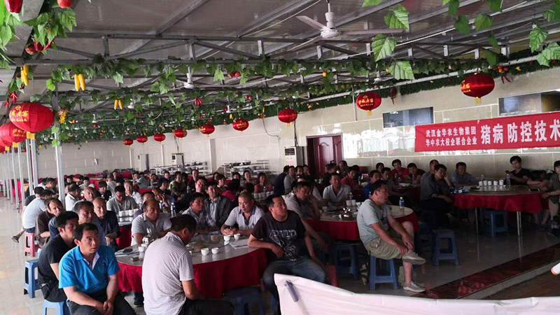 武漢金華農生物2018年夏季“科普新時代”豬病防控研討會于5月18日在河北石家莊拉開序幕,100多名規模養殖戶參會,我司系列產品獲得河北養殖戶的青睞與認可。本次會議由公司河北大區合作團隊負責宣傳、策劃、與組織,邀請有近20年豬場養殖經驗的吳經理現場分享,并就其使用我司動保產品的用藥心德與現場客戶作了互動交流。河北區本周內將連續舉行3場大規模研討會。