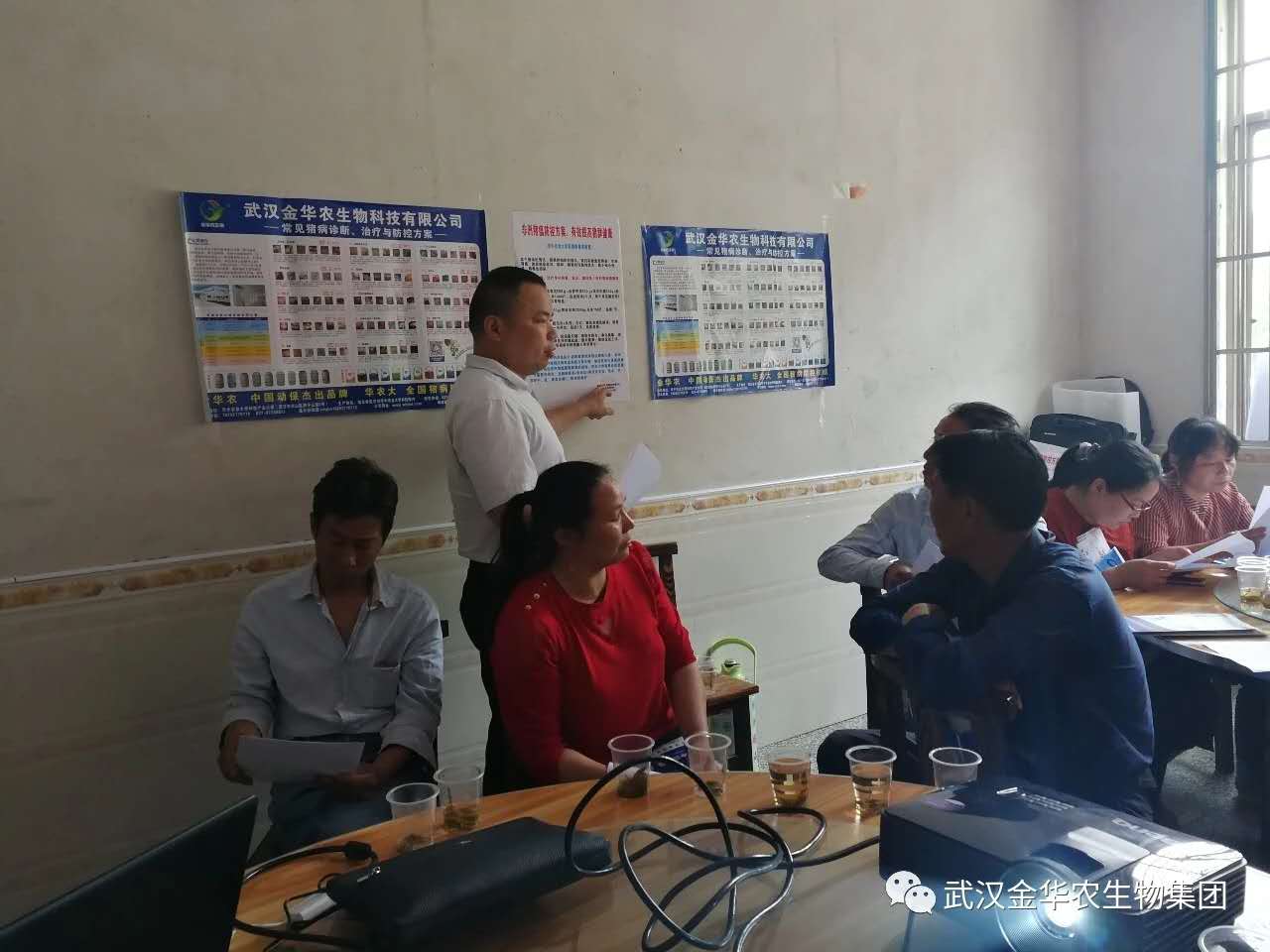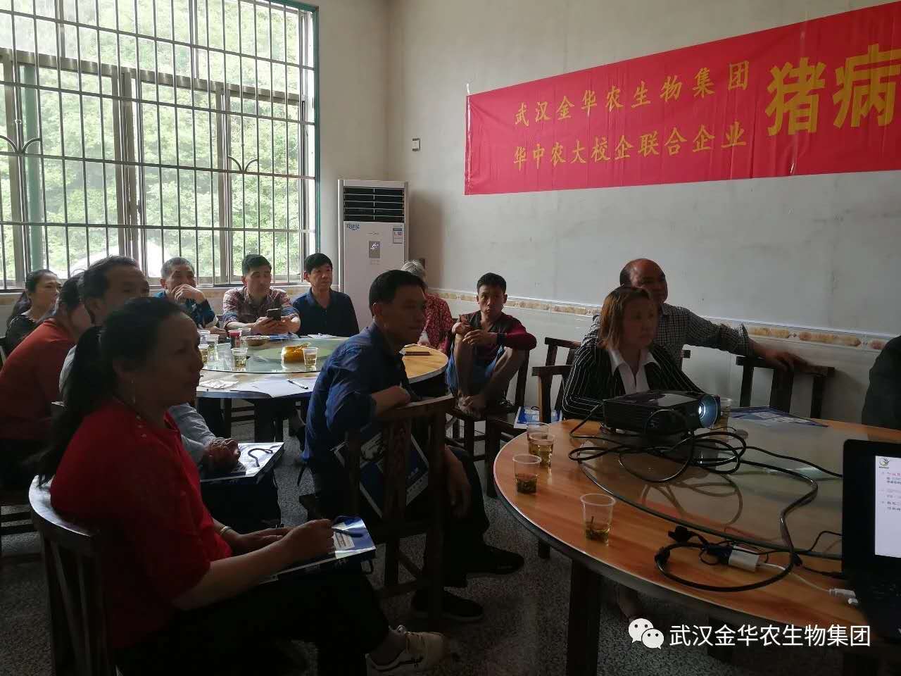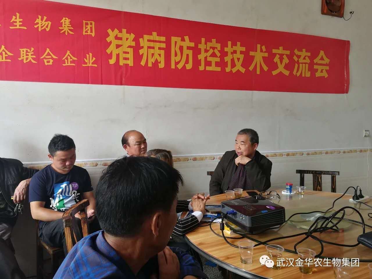 2019年4月25日,武漢金華農生物集團應湖南衡陽畜牧局主管單位邀請,在湖南衡陽湘鄉區域成功舉辦豬病圓桌交流會議,與會養豬戶30家,反饋效果明顯,現場訂貨積極,會議氣氛友好而熱烈。畜牧局領導李局長對這次科技下鄉活動十分重視,湖南衡陽當地戰略合作伙伴錢總出席參加本次會議。