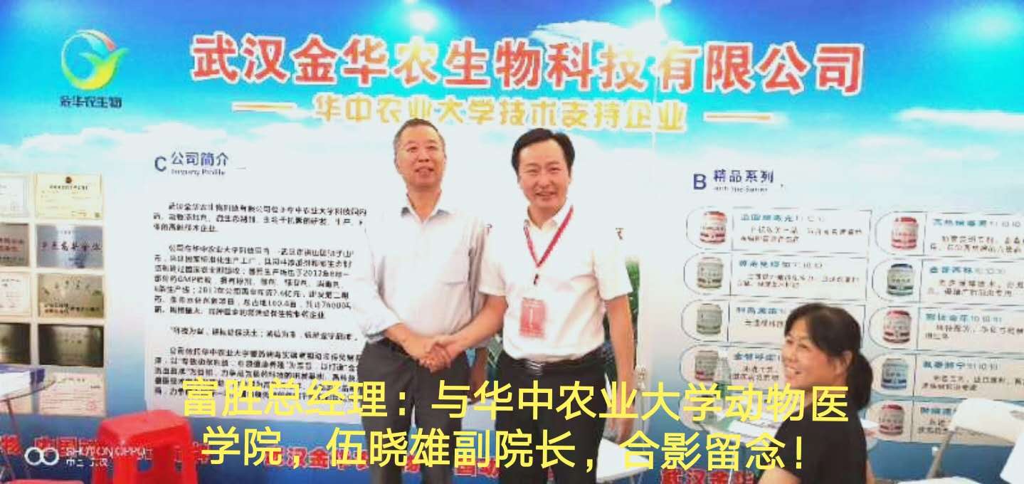 武漢金華農生物集團應邀出席并參加華中農業大學120周年校慶,及校友企業品牌展示日活動!公司領導富勝總裁親自出席,并作為嘉賓代表致辭!武漢金華農生物作為“湖北省優秀動保企業”、“大學校企合作典范企業”、“國家科技創新企業”、“湖北省農業示范企業”,過硬質量,杰出品牌,顯著療效,良好口碑,受到畜牧行業主管領導、業內同仁與廣大養殖戶朋友一致認可與高度贊美!