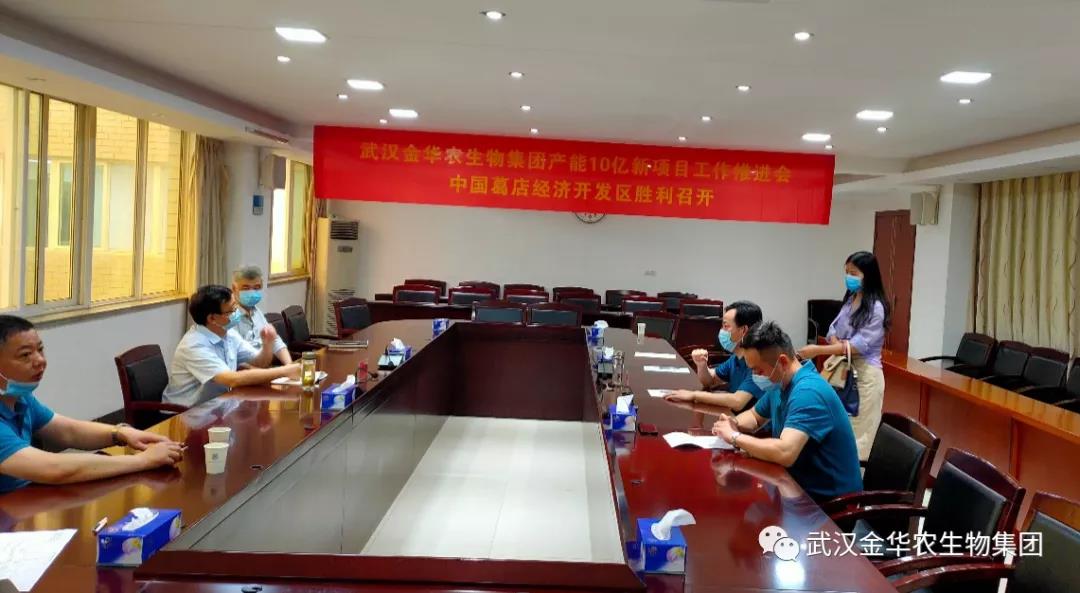 ? ? ? 本訊站(黃甜、雪琴)2020年5月22日上午,武漢金華農(nóng)生物集團投資3億元、產(chǎn)能達10億新項目推進會在葛店經(jīng)濟開發(fā)區(qū)召開,政企雙方緊密聯(lián)動,共促復(fù)產(chǎn)擴面新發(fā)展。