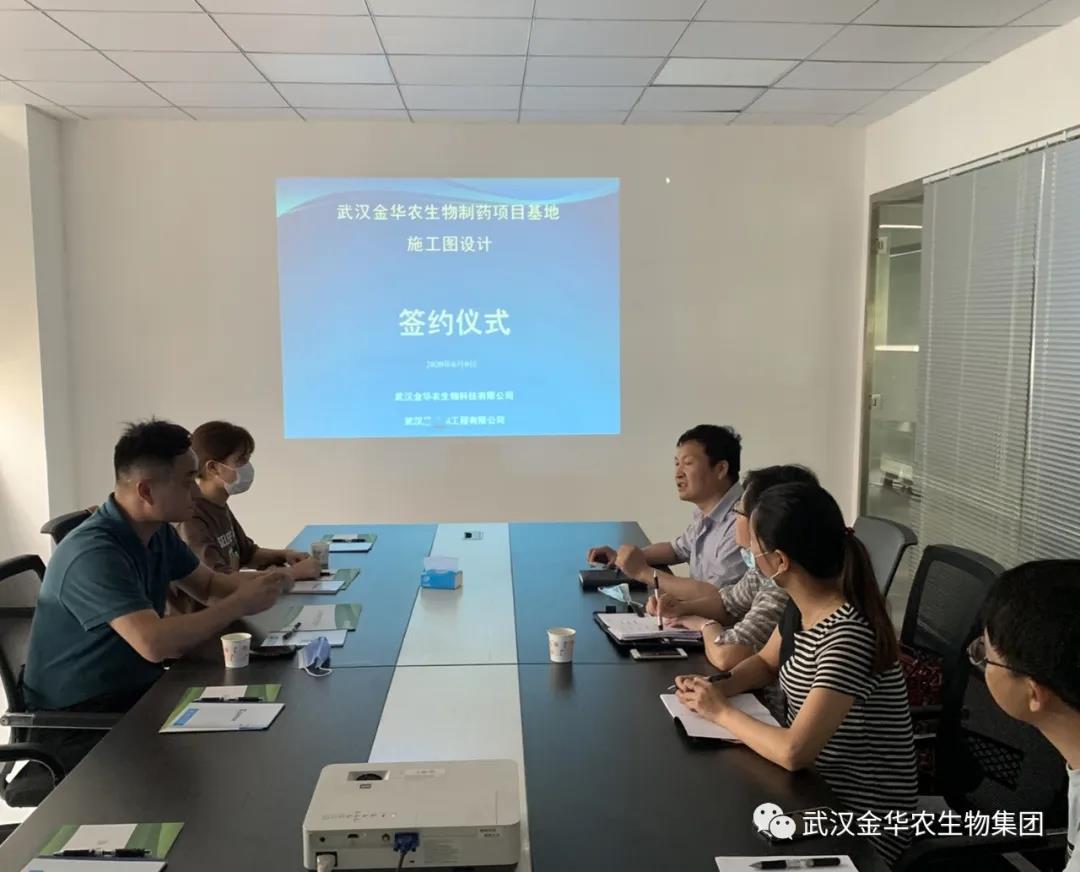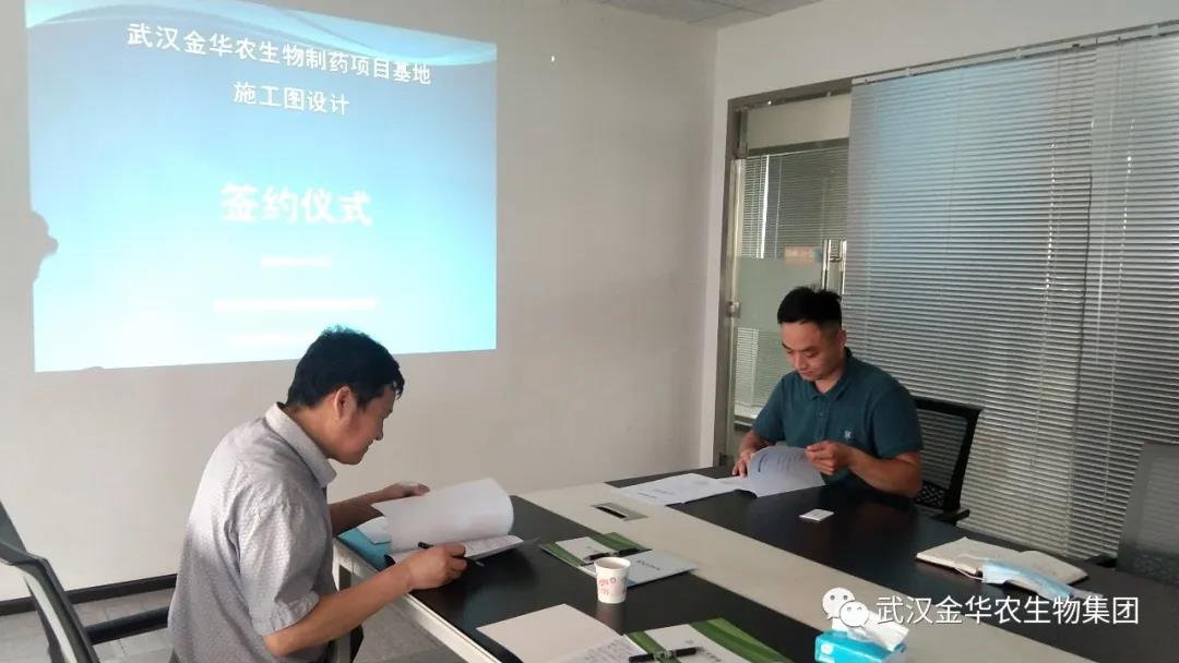6月9日,武漢金華農生物制藥投資3億元新項目基地施工設計簽約儀式在光谷生物城舉行。公司項目總監黃凡、企劃部經理趙方佳、合作方首席設計師團隊共同出席此次簽約儀式。